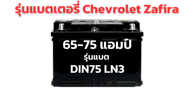 แบตเตอรี่ Chevrolet Zafira ทุกรุ่นปี ใช้ขนาด 65-75 แอมป์ ราคาเริ่ม 2,400 บาท รุ่น LN3 ขั้วจม แนะนำใช้ แบตกึ่งแห้ง หรือ แบตแห้ง เท่านั้น ทนทาน CCA สูง ร้านแบตเตอรี่โอเค ติดตั้งให้ถึงที่ มีประกันทุกลูก