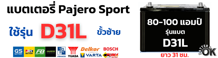 รถยนต์ ปาเจโร่ สปอร์ต (Pajero Sport) ตั้งแต่ปี 2012 ถึงปี 2024 แบตเตอรี่ที่ติดรถ ยาว 31 เซนติเมตร แบตเตอรี่ Pajero Sport ใช้ได้ตั้งแต่ 80 แอมป์ ถึง 100 แอมป์ ราคาเริ่ม 2,500 บาท แนะนำแบตกึ่งแห้ง และ แบตเตอรี่แห้ง ข้อมูลล่าสุด โดยละเอียด แบตเตอรี่โอเค รวมรวมมาให้แล้ว ที่นี่ครับ