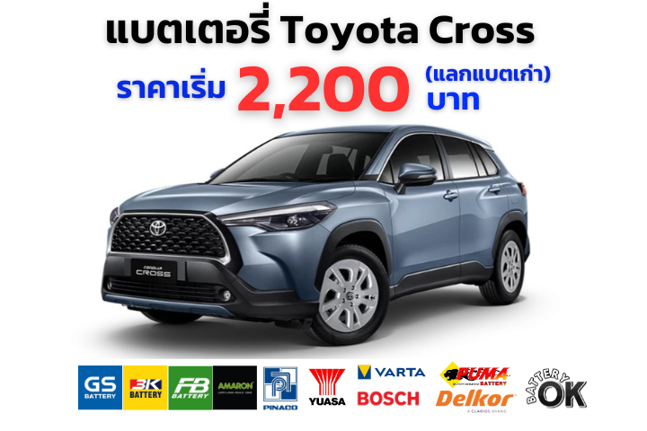 แบตกึ่งแห้ง Toyota Cross ราคา เริ่ม 2,400 บาท รับประกัน 12 เดือน ทุกยี่ห้อ