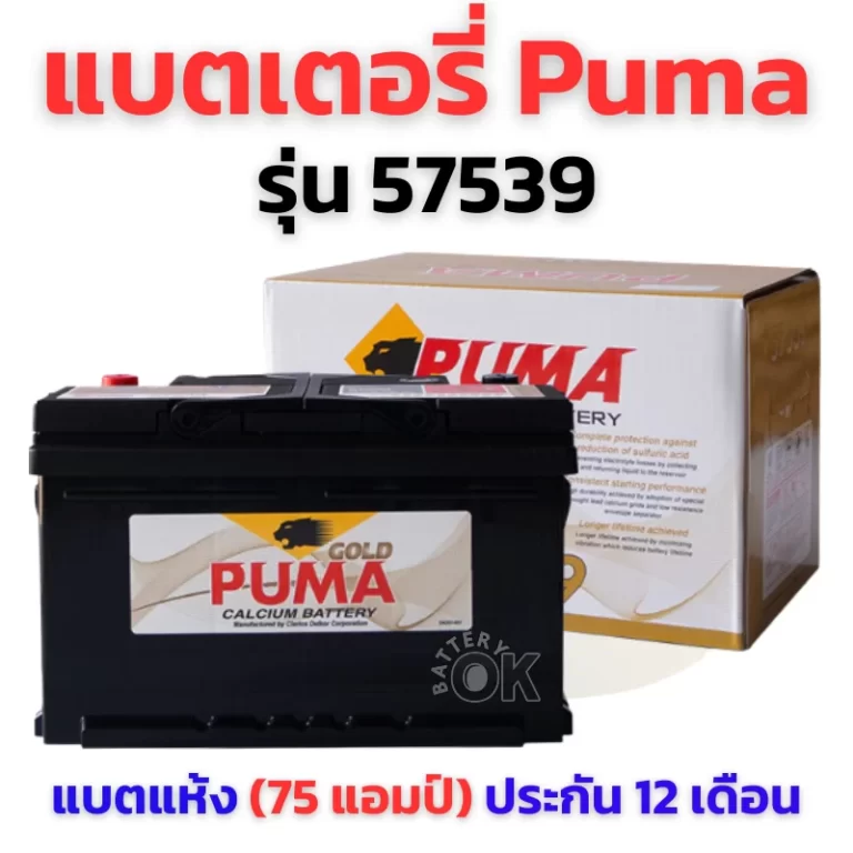 แบตเตอรี่ Puma 57539 DIN75 ราคา 3,400 บาท 75 แอมป์