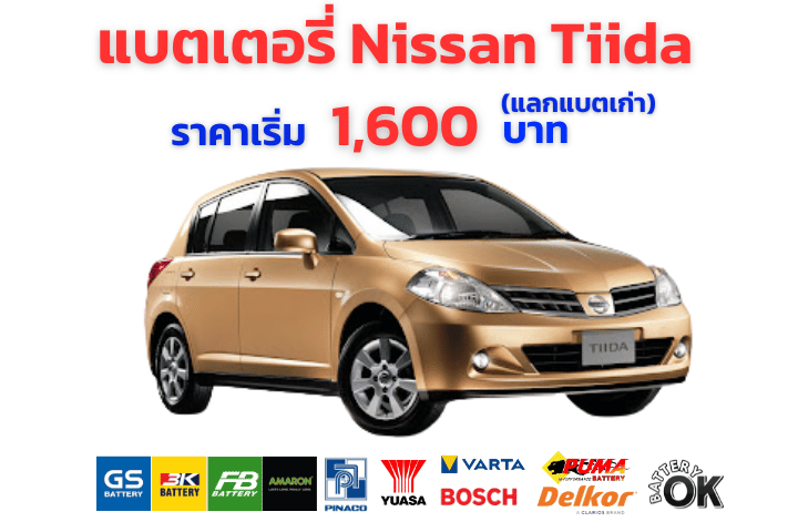 แบตเตอรี่ นิสสัน ทีด้า (Nissan Tiida) ใช้แบตเตอรี่ขนาด 45-58 แอมป์ ราคาเริ่มต้นที่ 1,600 บาท นิยมใช้แบตชนิดกึ่งแห้ง และ แบตชนิดแห้ง ร้านแบตเตอรี่โอเค เปลี่ยนให้ฟรีถึงที่ในพื้นที่บริการ มีทุกยี่ห้อ เช่น GS FB 3K PUMA BOSCH AMARON เป็นต้น รับบัตรเครดิต รูดนอกสถานที่ได้