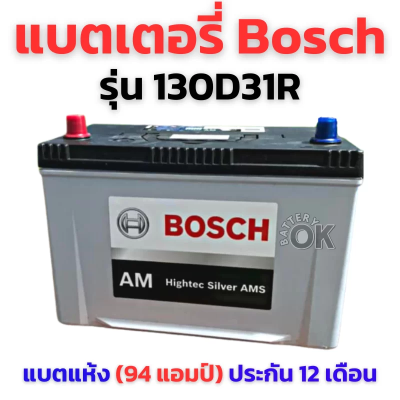 แบตเตอรี่ BOSCH 130D31R ขนาด 94 แอมป์ ราคา 3,500 บาท ชนิดแห้ง ขั้วบวกอยู่ฝั่งขวา รับประกัน 12 เดือน คุณภาพดี ทน ประหยัด ร้านแบตเตอรี่โอเค ติดตั้งฟรีถึงที่ ในเขตพื้นที่บริการ